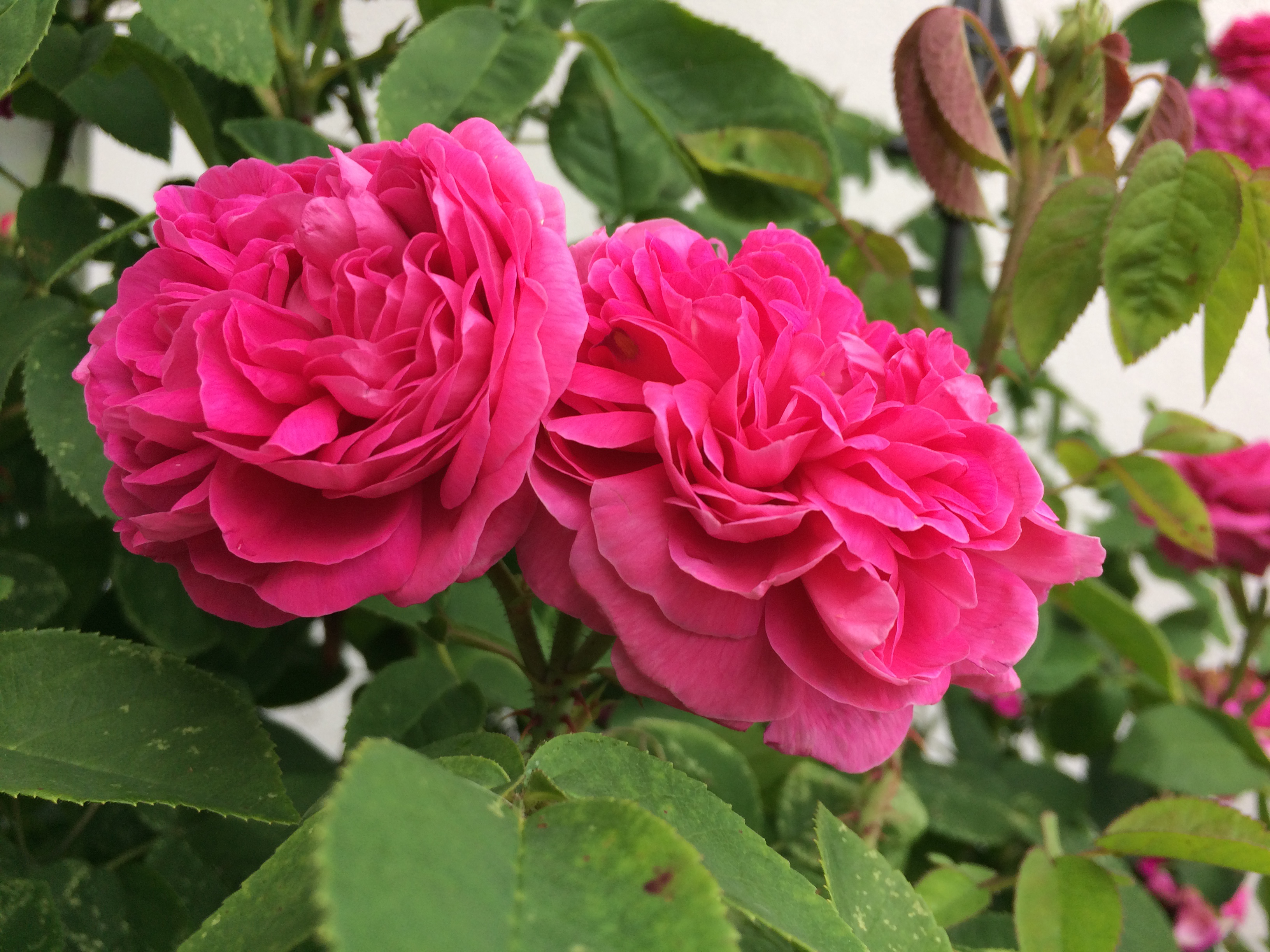 Ich liebe die Rose de Resht: Wenn sie blüht, zieht bei geöffneten Fenstern ein feiner Rosenduft durchs Haus. Die Rosenblätter trockne ich. Aus einem Teil mache ich Sirup, die andern leg ich mir für Tee zur Seite. Einige Blätter, aufgegossen mit siedendem Wasser – und schon liegt ein feiner Rosenduft in der Luft. Und der Tee schmeckt traumhaft!